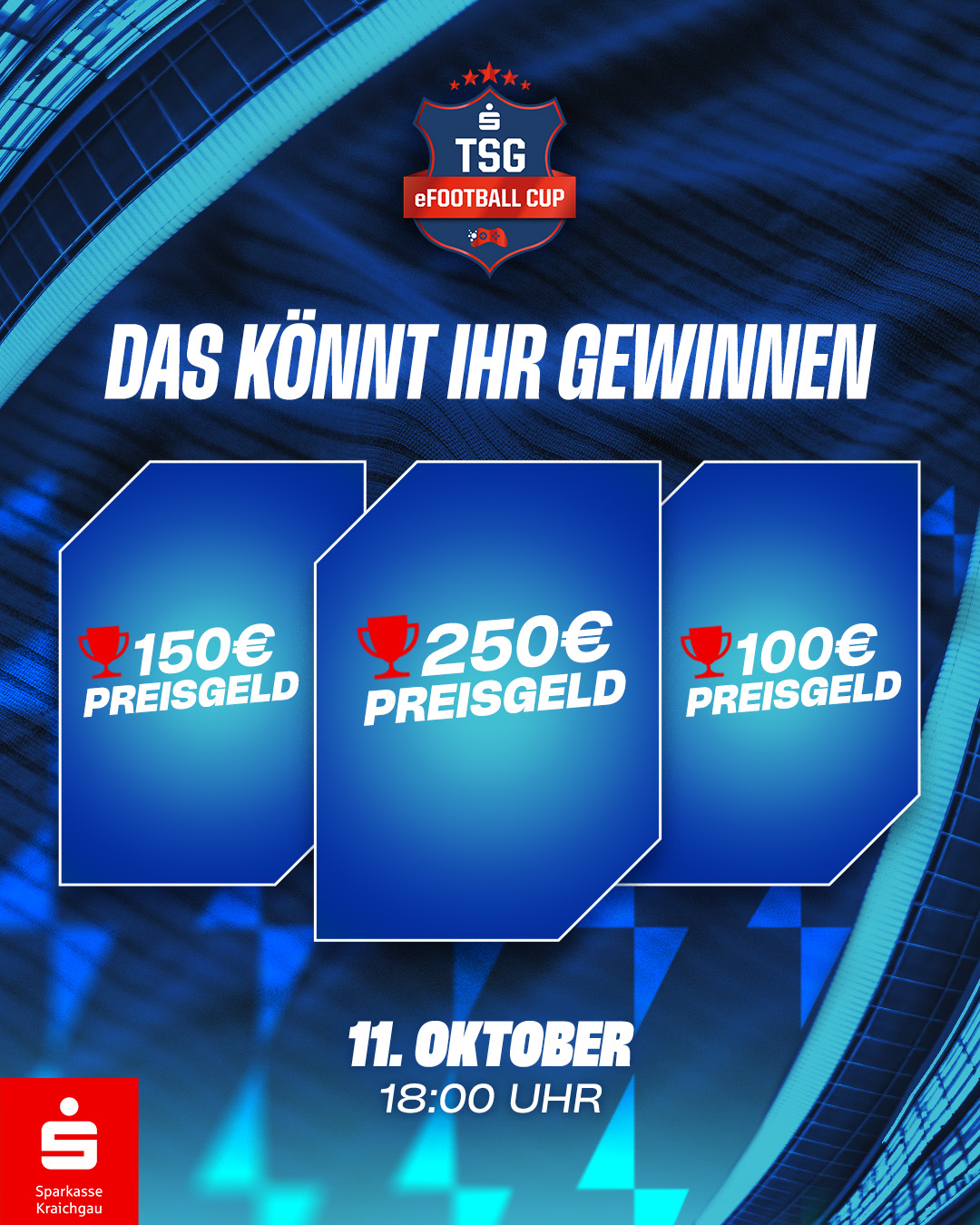 Der TSG eFootball Cup mit der Sparkasse Kraichgau geht in die nächste Runde. Beweise dich in EA FC 26 und gewinne Preise im Wert von 650 Euro!
