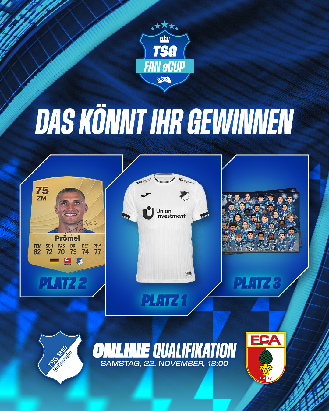 Die neue Saison der TSG-Fan eCups beginnt! Gemeinsam mit unserem Partner Union Investment könnt IHR euch für das Offline-Finale gegen den FC Augsburg qualifizieren und um exklusive Preise mitspielen!